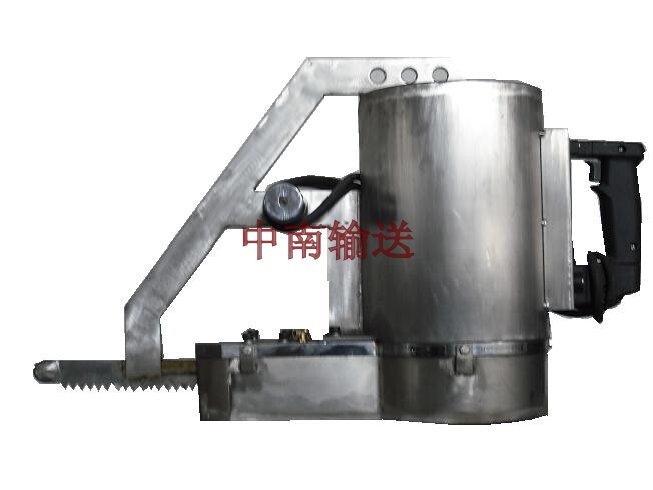 該機是用于牛、羊、馬等牲畜的開(kāi)胸,以便工作人員對胴體的掏內臟及劈半之用,主要由偏心塊、邊桿、鋸弓、鋸條、電機等組成。