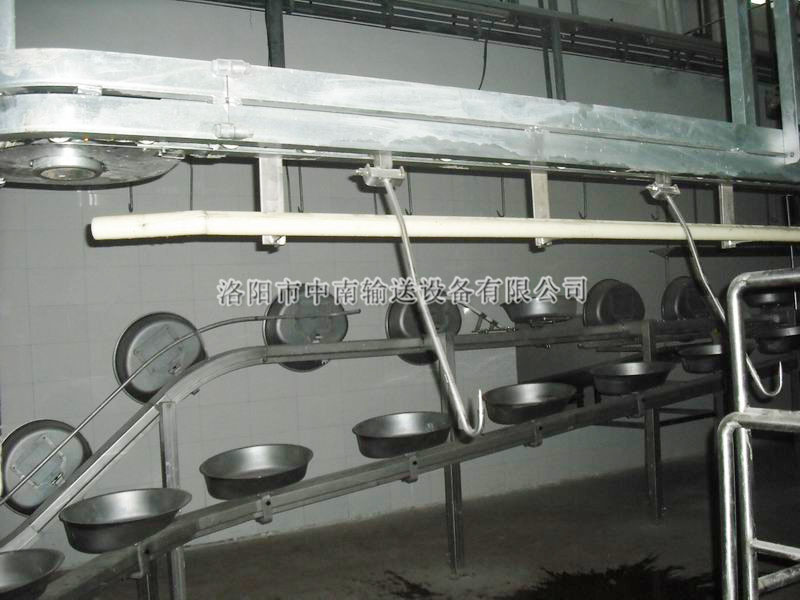 同步衛檢線(xiàn)可分為:落地式和懸掛式。將屠體的頭、腸、胃、心、肝與胴體同步對好檢驗,紅臟與白臟懸掛在衛檢線(xiàn)上,按設定的速度與胴體加工線(xiàn)同步運行,由人工對內臟進(jìn)行充分檢驗檢疫,,這樣既保證了肉質(zhì)的衛生質(zhì)量,又符合國家有關(guān)衛生檢測標準。該設備運行平穩,同步準確,是屠宰加工中不可缺少的裝置之一。